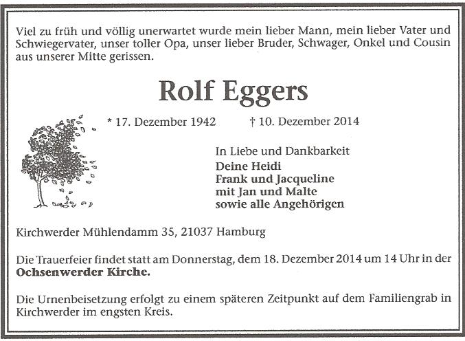 Der Hamburger Rolf Eggers lebt nicht mehr![]() Am Mittwochabend (10. 12. 2014) ist Rolf Eggers vom RV Hansa Kirchwerder - kurz vor seinem 72. Geburtstag - plötzlich und unerwartet verstorben. Veröffentlicht am: 17:10:19 12.12.2014 von Walter Dobbratz Letzte Aktualisierung 20:50:44 09.12.2015 |